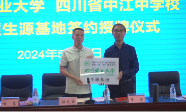 图为四川农业大学优质生源基地——四川省中江中学签约授牌仪式