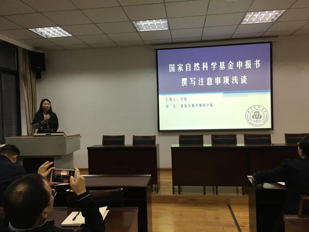 会上,曹云忠通报了我院2019年国家自然社会科学基金申报与立项情况,并对我院李琦老师2019年成功申报国家自然科学基金提出表扬。随后,李琦根据她成功申报的国家自然社会科学基金项目,分别从“选题”、“立项依据”、“研究内容”、“研究方案及可行性”、“研究基础”几个方面详细谈了自己的心得体会,以及撰写申报书的相关注意事项。李琦认为,成功申报国家基金的必备条件就是:新颖的选题,分层递进的研究背景及现状,详细的研究方案以及具体的可行性分析。当然,研究项目的创新点也是必不可少的。