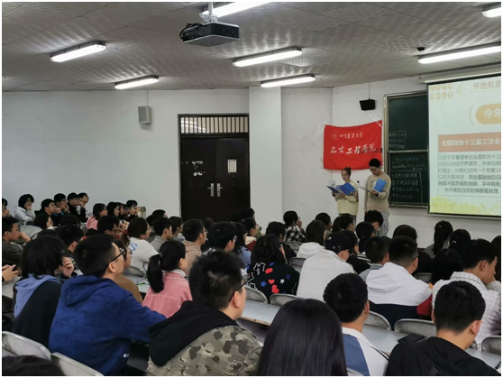 在庄严的氛围中,参加本次团日活动的各位同学齐唱团歌后就坐,由主持人带领同学们观看主题视频,了解当今世界粮食短缺情况与饥饿人口情况。在粮食短缺这一世界性问题中,一组组数据触目惊心。因疫情影响,世界饥饿人口数更是增长迅速,几乎是“每九个人中就有一人挨饿”,转而谈及餐桌上严重的浪费现象,令人深思。而后主持人介绍了科学家们致力于解决粮食问题的伟大付出,呼吁同学们用餐时杜绝浪费现象,积极参与“光盘行动”。古语云:“一粥一饭当思来之不易”,尽力减少餐桌上的浪费,不辜负劳动人民与科学家的劳动成果。