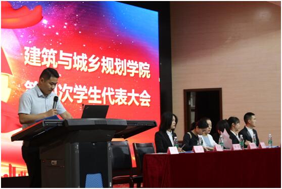 2021年5月30日上午九点,学院第四次学生代表大会在图书馆报告厅举行,会议由分管学生会组织的院团委副书记周宁老师主持,杨雪老师、车亮亮老师、马双老师、第七届学生会主席团、以及全院103位学生代表出席会议。