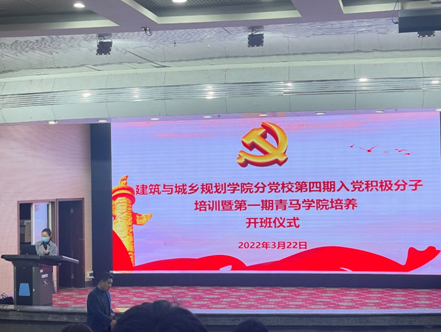 2022年3月22日下午,学院在图书馆报告厅举行了 “beat365分党校第四期入党积极分子培训暨第一期青马学院培养开班仪式”。参与本次开班仪式的青马学院学员和入党积极分子共计235人。开班仪式由学院党委办公室主任、团委书记杨雪主持。