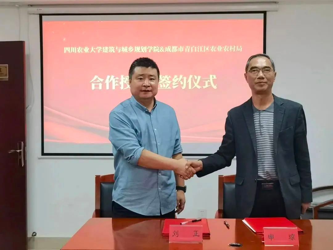 11月8日,我院到成都市青白江区农业农村局(以下简称:区农业农村局)洽谈合作事宜并签订了《框架性合作协议》,学院党委书记申琼与区农业农村局党组书记、局长刘正共同为“产学研合作基地”揭牌,学院和区农业农村局相关人员参加了上述活动。
