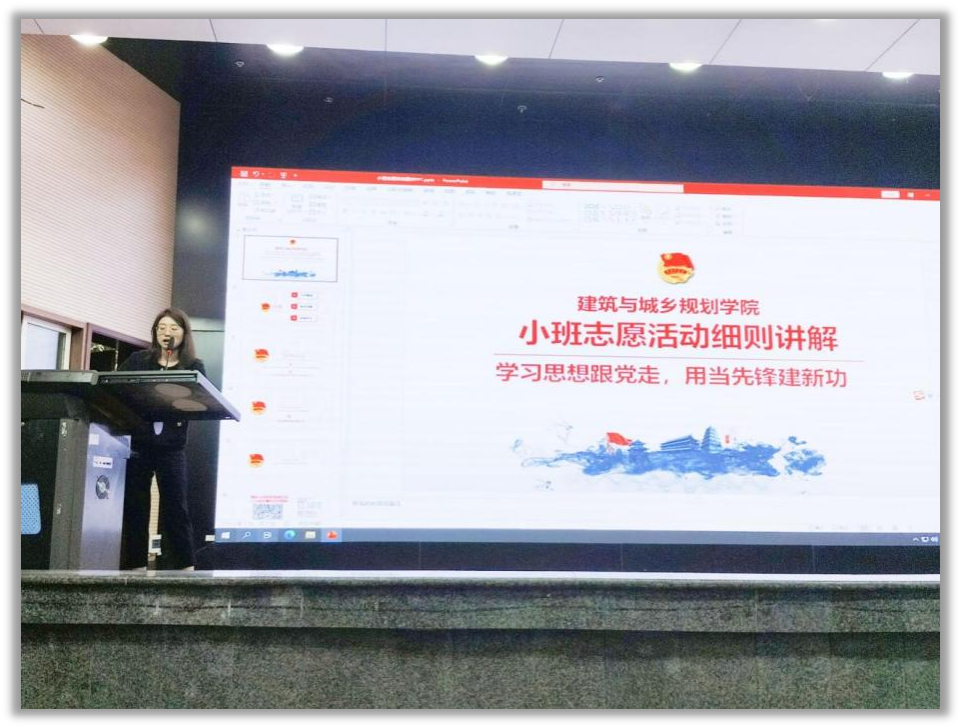 培训由文件解读、细则讲解、答疑环节三部分组成。针对我院学生反馈的志愿活动难抢、志愿时长不足等痛点问题,学院号召小班自主对接社区、学校等志愿平台单位,依托自身学科开展各类志愿活动。同时,马双老师详细讲解了开展活动的详细流程和材料提交的要求,并鼓励低年级同学积极大胆的开展志愿服务服务活动,在实践中增才干长知识。
