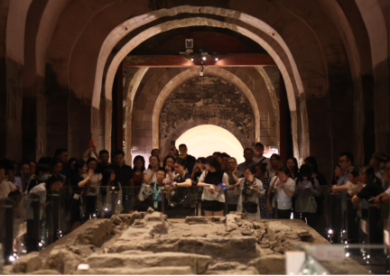 签约仪式后,在成都永陵博物馆专业讲解员带领下,付刚及师生一行先后来到综合馆展厅、永陵地宫等,通过参观博物馆内展陈,学习了前后蜀历史与文化。