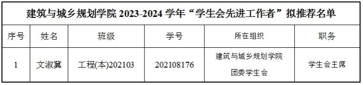 经参评者自主申报、资格审核,民主评议程序评选推荐,现将我院2023-2024学年“学生会先进工作者”拟推荐名单进行公示,公示期3个天(3月30日-4月1日)。如有异议,请在公示期内实名进行意见反馈。