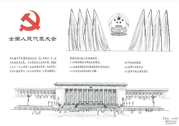 2017年5月30日至6月28号,由我院党委主办,全体学生党支部承办的“绘党章 颂党恩”手绘党章大赛,经过宣传动员、学生参赛、专业评审,微信投票、网络展示等环节,圆满落下帷幕。比赛以党章为内容,通过自己设计、绘制出党章相关章节内容。第一轮比赛采用专业评委评审的形式,从近50件参赛作品中评选出15件进入第二轮,第二轮采用微信投票的方式进行。最终城规2016级2班牟玲利同学绘制的第一章第六条“预备党员必须面向党旗进行入党宣誓”,以微信投票972票摘得头筹,获得一等奖;建筑学2014级2班陈永臻,城乡规划2015级1班吴乃珊获得二等奖;建筑学2015级2班邓梅林等五名同学获得三等奖。