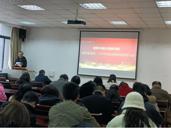 为贯彻落实习近平总书记关于大力弘扬教育家精神的重要指示,营造全院学习和弘扬教育家精神的良好氛围,厚植学院教师躬身教坛、强国有我使命感,35日下午,建筑与城乡规划学院全院教职工在2C405举行“教育家精神2024年巡回宣讲活动走进四川集中学习会,学习会由学院党委书记申琼主持。