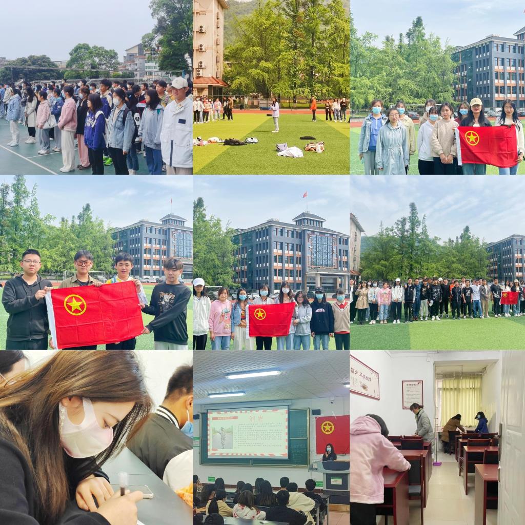 以实践活动为载体,引领团员青年增强奋斗强国,永远跟党走的坚定信念。组织观看升旗仪式并对国护队的故事进行深入探寻;邀请退役大学生士兵刘岩分享参军体验和学习收获;开展“国旗下的演讲”、“我与团旗合个影”、“团史版迎面接力”等活动;组织参与红色影视剧配音、心愿便利贴书写祝福等活动;组织开展志愿公益服务,打扫学院公区卫生,维护开放自习室电脑、电器设备安全。