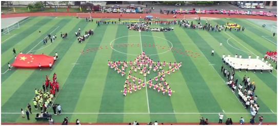 运动会入场式,学院团体由两个方队组成,分别为学生国旗伞方队和教师国旗方队。当他们走过主席时,师生全体步伐整齐划一,每个人的脸上都洋溢着自信从容的笑容,听那响亮的口号声与整齐有气势的脚步声融为一体。师生配合着《我和我的祖国》乐曲,用自己的方式表达着对祖国的祝福和美好生活的向往。