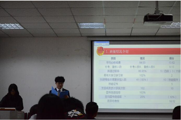 自学校、学院开展学风建设工作以来,我院从打造品牌活动到开展个性化学风建设,集各方力量共同营造良好学风氛围,在课堂学习状态、四六级过级率等方面取得明显进步。全院14个小班参加了本次“学风建设终审答辩会”,各答辩班级分别从能力培养、思想成长、行为活动、专业成绩、班级特色等方面总结上一学年学风建设的成果与不足,并就此对下一学年学风建设重点开展的方面展开论述。围绕“特色”提出奋斗目标、规划创建路径、创新管理育人举措等,力争打造以特色为依托、全方位发展的样板创建班级。