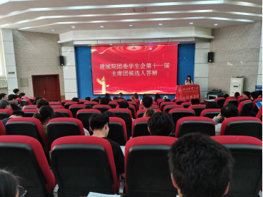 主持人首先介绍出席此次大会嘉宾,并详细阐述主席团候选人的竞选规则和会议流程随后开展主席团候选人竞选答辩,答辩由5分钟个人陈述和3分钟提问组成。竞选我院团委学生兼职副书记、学生会主席的12位候选人依次上台,通过自我介绍、获奖经历、工作展望等方面的陈述,配合精致的PPT展示和充满激情的演讲,展现了他们的成长历程和对团学工作的热忱。问答环节更是加深了代表们对候选人的了。现场气氛活跃,掌声连连